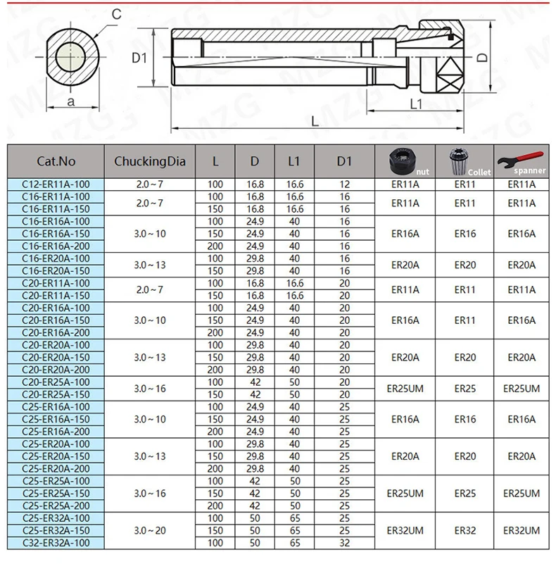 MZG 1PCS C32 C40 ER 25 32 40 Extension Milling Cutter Toolholders for Milling Drilling Shanks